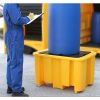 Les plateformes de rétention permettent de stocker des fûts à la verticale et sont connectables entre elles ce qui permet d’augmenter la surface de stockage. Elles sont la plupart du temps en PE (polyéthylène) et sont très résistantes aux UV ce qui permet de les installer même en extérieur.